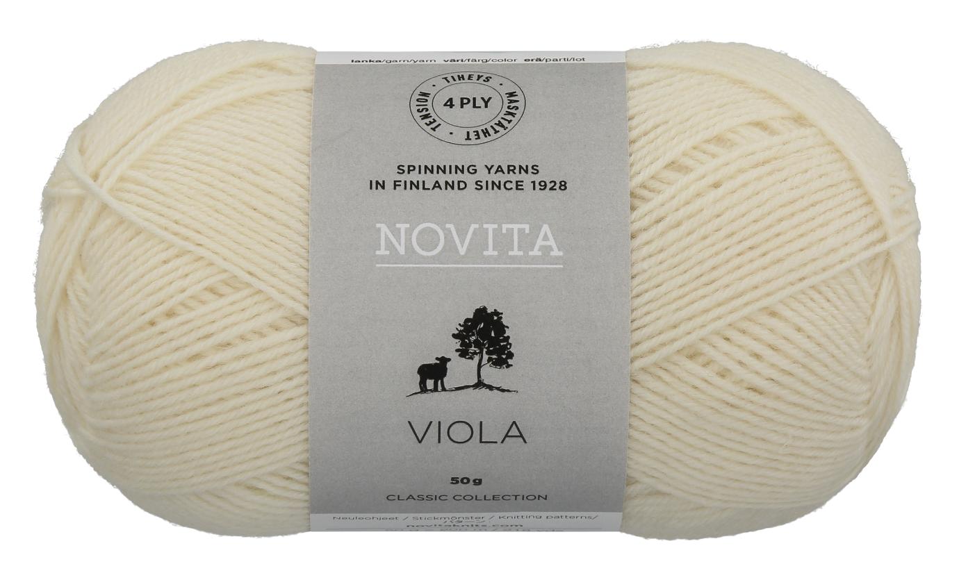 Novita Viola is ideaal voor sokken, sjaals en lichtgewicht breiwerk en perfect voor het maken van ingewikkelde patronen. Viola leent zich voor alle internationale breipatronen die 4-draads garen vereisen. Voor een breiwerk in maat M is ongeveer 400 gram garen nodig en voor een paar basissokken in maat 38 100 gram garen. Viola bevat 80% wol en 20% polyamide. Een bolletje van 100 gram heeft 400 meter garen. Aanbevolen naalddikte 3 mm, 2,5 mm voor sokken. Alle artikelen die met Novita Viola zijn gebreid, zijn machinewasbaar op 40 graden.
